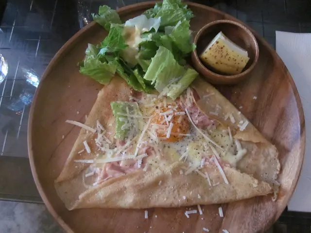 經典可蕾特。可蕾特也稱法蕾特,和可麗餅蠻相像的,只不過可蕾特是鹹食,特別之處在於採用蕎麥粉製作,所以餅皮口感較薄嫩,也帶點青草香氣。沙拉搭配凱薩醬,金黃半熟蛋,軟嫩的培根與起士,再灑上整盤的乾酪,用木盤盛裝的法式可蕾特,色澤相當美。此外,店家採用的納豆蛋,是在雞隻所吃的飼料中,添加健康納豆菌,讓蛋也充滿納豆的營養,使得蛋可以直接生食喔。