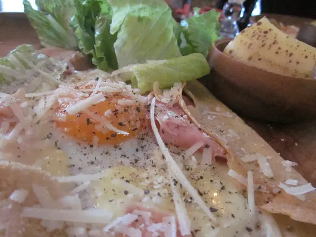 凝結的起司吃起來口感更濃郁,煎煮剛好的軟嫩培根,加上金黃蛋液的溫潤口感,餅皮沾著蛋液入口,十分美味。