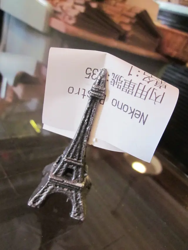 巴黎鐵塔的帳單夾,小巧精緻。短短的幾個小時,可以感受到店家投注的許多想法和熱情,不過能否獲得顧客喜愛,其實蠻主觀的,但是具有特色的餐點以及好食材的運用,貓的美味之夢還是值得一再造訪的呀。