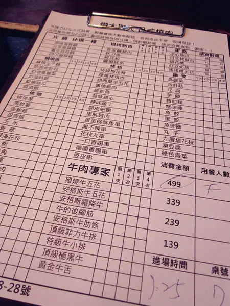菜單上畫了四格,可以點四次,不過大概吃到第二輪就會很飽了,第三次點菜通常是點甜點。