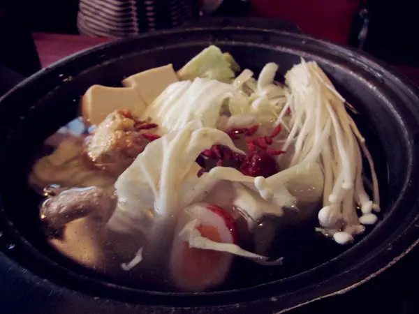 火鍋的湯底有四種分別為原味海鮮鍋、沙茶魚頭鍋、養生菇菇鍋和四川麻辣鍋,我們選了感覺比較爽口解膩的「養生菇菇鍋」,火烤兩吃通常火鍋都是配角,味道經常是普通而已,而且火鍋上桌時看起來其貌不揚,更讓我感覺一定是一般般的火鍋。沒想到同行的友人實際嚐了一碗,說湯頭相當不錯呀,趕緊也來嚐嚐看,的確是來不錯呀。所以吃膩烤肉時,不妨喝點湯來解膩呀。
