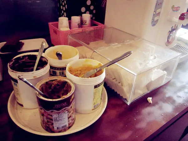 另一旁是吐司區,怕餓的客人可以先填填胃。不過呀,有個小撇步透漏給大家知道,其實吐司也可以拿來吸油喔,怕油膩的人可以拿個幾片電在餐盤上吸油,這樣也吃得比較健康喔。