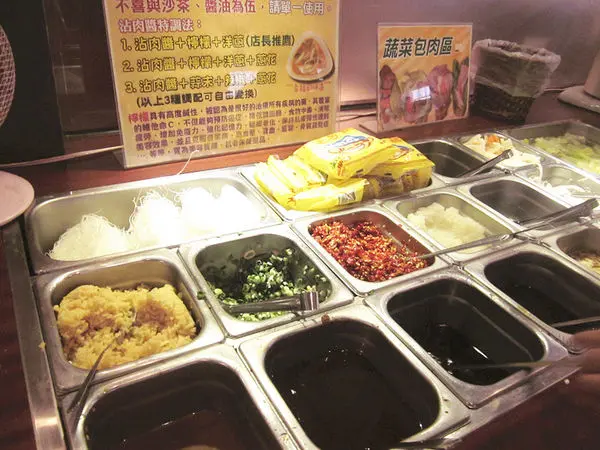 調味醬的部分有烤肉醬、日式醬油、蘿蔔泥、蒜末、蔥花、辣椒、沙茶,另外還有王子麵,冬粉和白飯喔。
