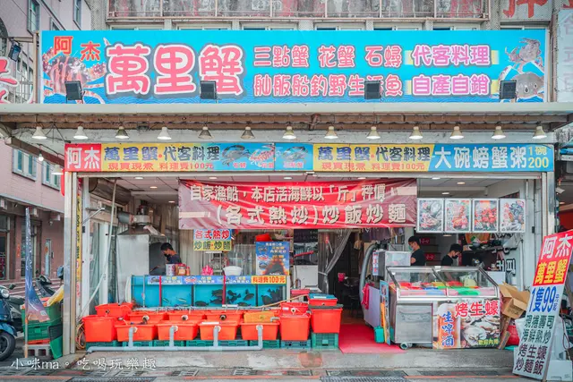 阿杰萬里蟹 ▏以斤計價、價格透明公開 吃海鮮不怕被坑。萬里 野柳海產就吃這間 認明藍色招牌那家。尚青
