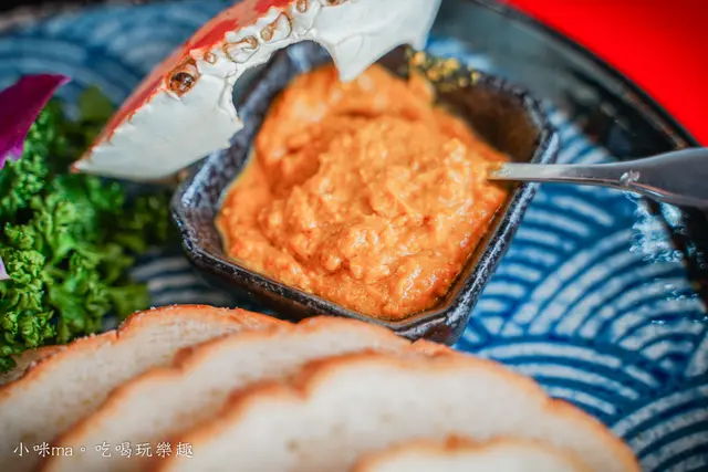 選用新鮮的萬里蟹的蟹黃搭配咖哩做成抹醬,抹在麵包上的法式吃法是店內的招牌, 有半份跟一份兩種可選,這道真的非常涮嘴