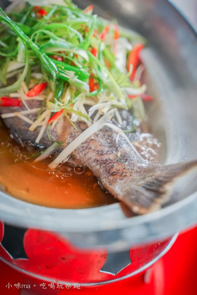 喜歡吃魚的公公超愛這尾清蒸黑毛魚,起鍋後擺上蔥絲、辣椒絲、薑絲提味,清蒸手法最能吃到魚肉的鮮度