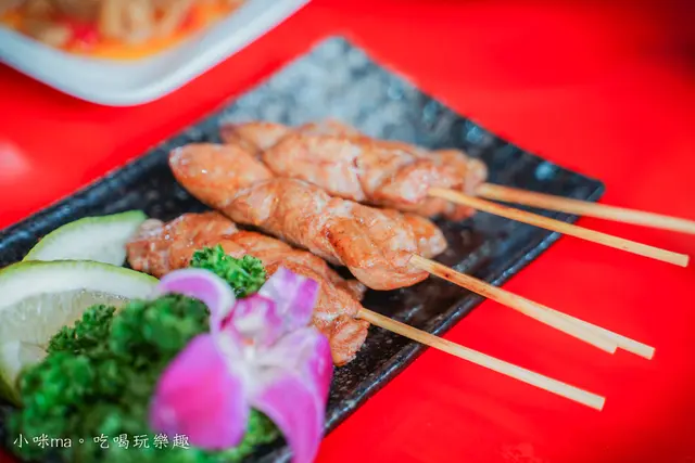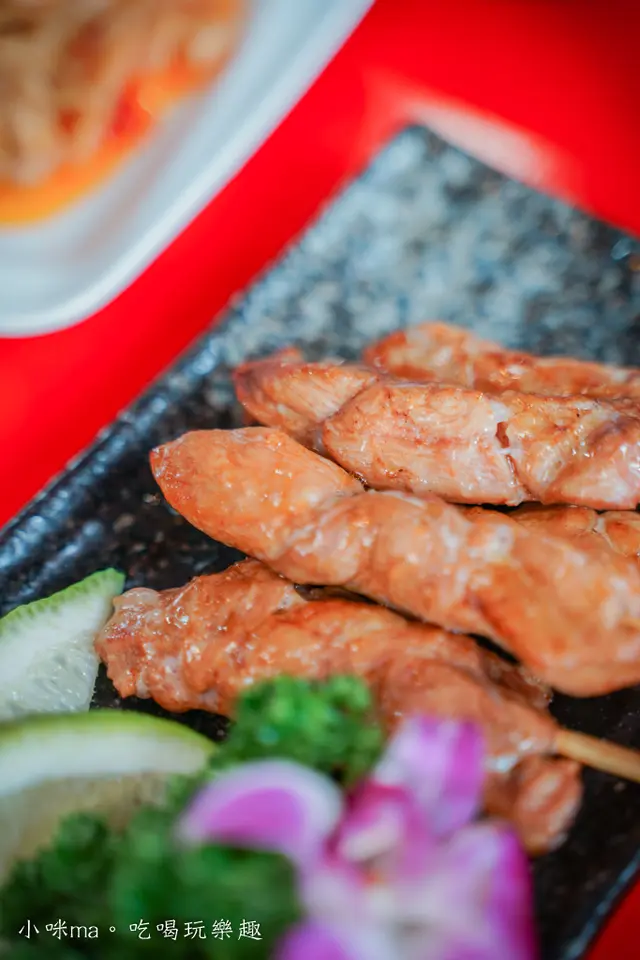 這盤烤雞肉串超神奇,連平常不特別愛吃肉的哥哥一連吃了四串,媽媽只吃到一口,雞肉真的很嫩,會一根接一根沒錯 哈哈