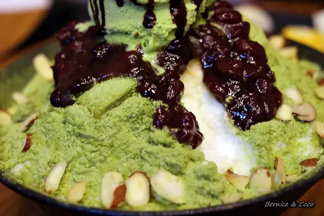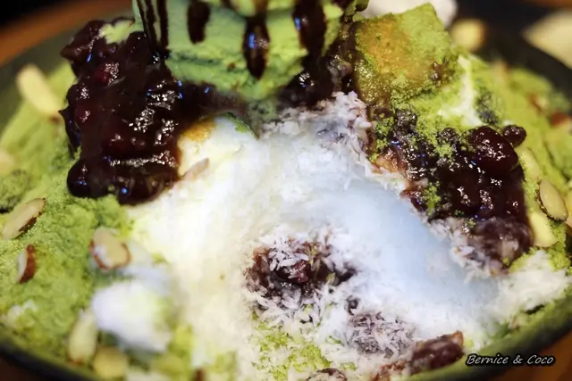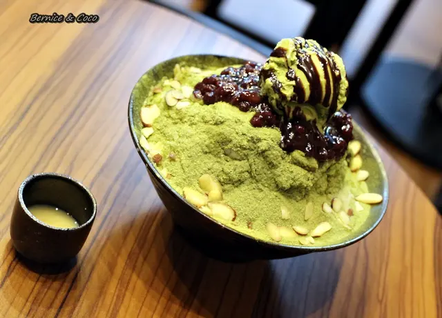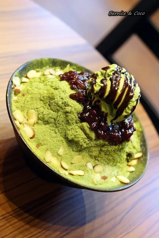 (抹茶冰淇淋+抹茶粉+巧克力醬+紅豆+黃豆糕+杏仁片+煉乳)