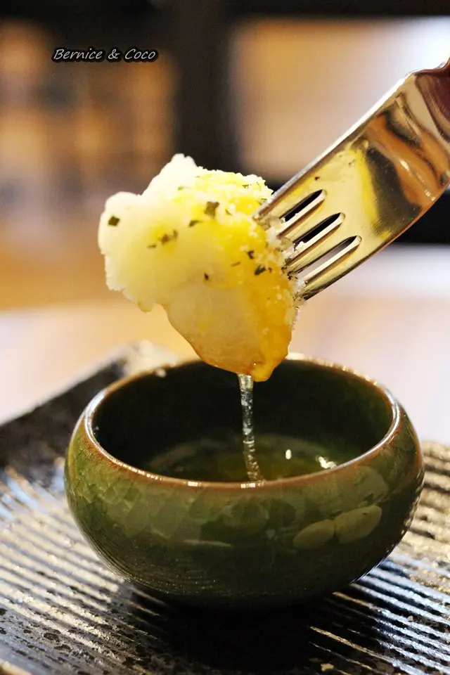 聽老闆的建議沾了一下特製醬料,不甜好香還蠻好吃的