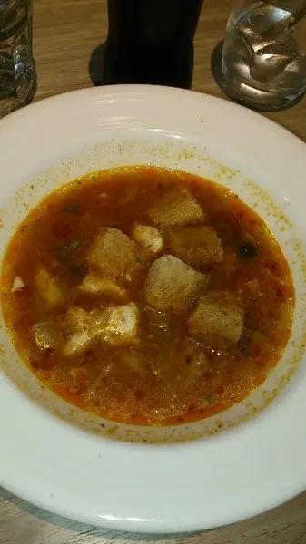 湯品的部分今天剛好有兩種口味,一種是屬於較重的雞肉蕃茄湯,另一種則是玉米濃湯,蕃茄湯並不會辣,酸甜的好喝。裡面的雞肉量給的不少,份量上算還滿足夠。