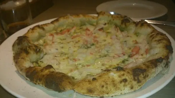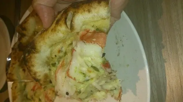 羊奶起司青醬嫩蟹披薩:這PIZZA送上桌時,非常香!很濃郁的起士味。