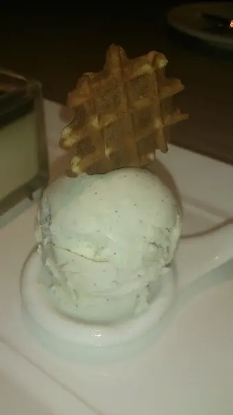 手工冰淇淋:上面附的餅乾好脆,可以挖著冰淇淋一起吃,這手工冰淇淋味道好濃,今天是吃香草口味的,我覺得這味道並不會輸大品牌。