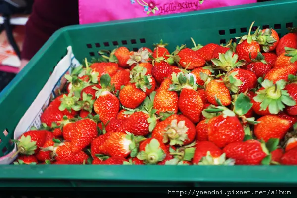 剛好老闆娘他們叫的水果商送來整籃新鮮草莓~~這些鮮紅的飽滿草莓,可是來自苗栗大湖地區的新鮮直送哩!!!!