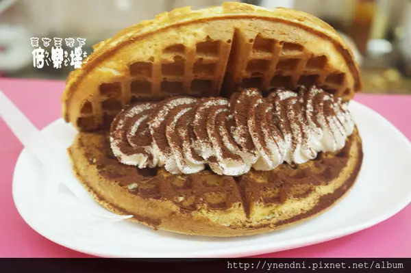 提拉米蘇在路上吃掉哩,口味沒有想像中的太甜反而偏清淡,吃的出來可可粉的味道喔!只是奶油壓下去咬的時候,鬆餅會呈現"爆漿"狀態XD