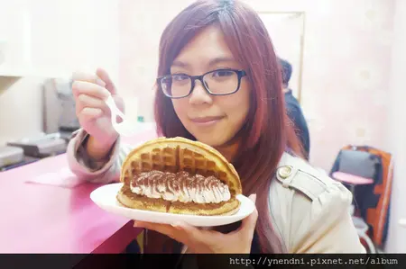 老闆製作出來的鬆餅都很大個,跟一般家用型鬆餅不同(小芙開始苦惱自己是否吃的完)