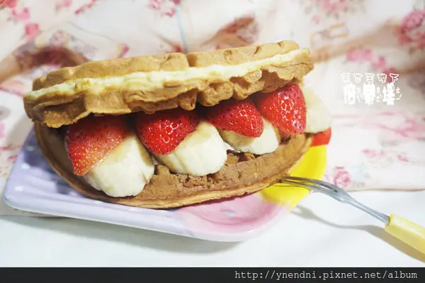 所以鬆餅外皮已經軟掉了,想要再吃到美味的鬆餅必須先把水果拿出來再烤一烤鬆餅外皮喔草莓吃起來還是很鮮甜,烤過後的鬆餅餅皮就比較脆了,奶油則幾乎被熱度吃掉