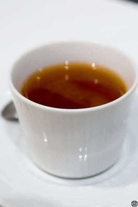 因維持法式甜點不減糖的作法,想點杯茶飲緩和些,可惜選錯了,茶中加了芒果百香果果醬,淡淡甜味無助解膩,應挑無糖茶類較為合適。