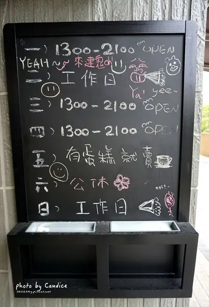 另外呀!因為老闆也實在是太有個性了(其實是因為老闆超忙碌,據幫忙的學長說他們都做蛋糕做到凌晨),嗜甜一週只開三天(週一週三跟週四),週五則是有蛋糕才賣,而且開店時間是下午一點(很有骨氣的避開吃飯人潮),坎蒂斯平常都是吃完午餐後,就會到嗜甜門口守候,堅持等到老闆開店拉鐵門吃到甜點,我才能心滿意足的上課去!