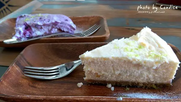 消化餅乾壓的非常緊實,不會一切就碎,老闆喜歡在甜點上刨上些檸檬皮,當作裝飾外,還能夠增添清香,檸檬生乳酪走的是小清新風蛋糕路線哈哈!檸檬生乳酪吃起來不酸,白皙滑順的乳酪入口後,會留下淡淡的檸檬味,檸檬跟野莓兩種口味給我完全不同的感覺,不過他們都中和了原本吃多會膩的乳酪!