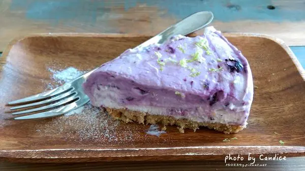 乳酪蛋糕跟野莓均勻的混和後,蛋糕體變成了夢幻的粉紫色,這個口味我個人也非常喜歡,野莓本身的味道強烈,跟乳酪搭在一起卻意外的和諧,藍莓果粒夾在蛋糕中,又增添了蛋糕的口感,是塊各方面表現都很優良的乳酪蛋糕哈哈!