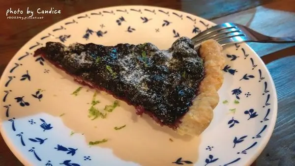 野莓派的派皮也是很酥脆,餡吃起來是甜甜的果醬口味,是使用藍莓跟覆盆莓下去做的,派上面有超級多顆超真實的藍莓果粒,跟野莓生乳酪都是味道強烈,也非常好吃的口味!