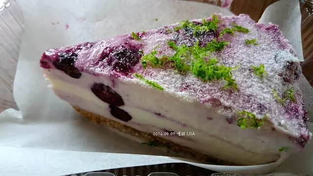 野莓生乳酪的蛋糕主體相對於檸檬生乳酪來的結實一點,不會輕易的軟掉(也有可能是因為我們快速吃光它)。