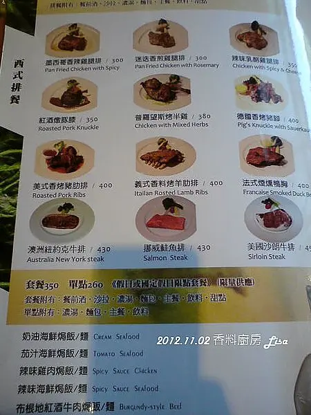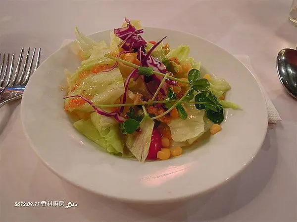 住在淡水很多年,前幾年從來都沒有去過香料廚房,甚至從來都沒注意過它在哪裡?!最近很剛好的連續去吃了兩次(9月中跟11月初),9月那次是吃晚上,封面也是當時拍的,整間店看起來還蠻有情調的;11月的那次是吃午餐,平日的中午剛好遇上商業午餐。