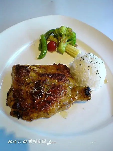 這個雞腿弄的還蠻好吃的,迷迭香的味道很棒,整隻腿都有入味。