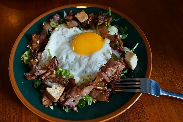 除了炫目的黃澄蛋外 煎得恰當合宜的鹹豬肉更是主要主角