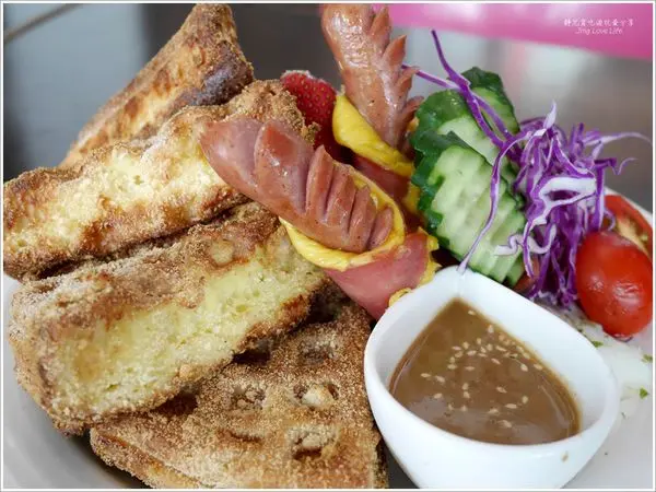 超級豪華的鬆餅套餐,炸鬆餅口感超級特別,外酥內軟的口感,帶點鬆餅本身的札實感,