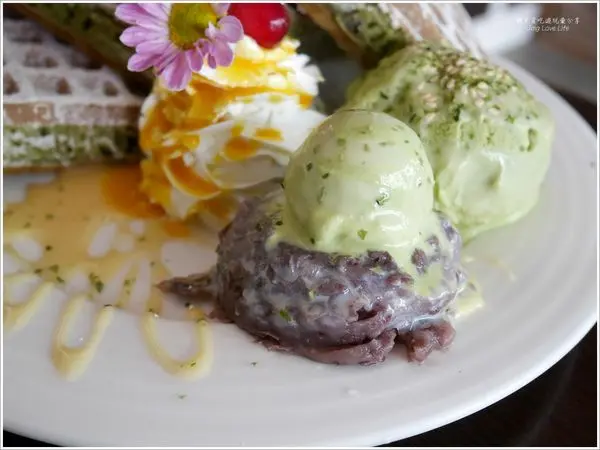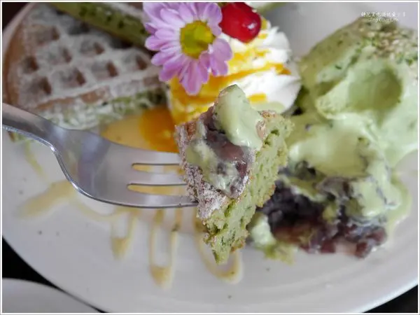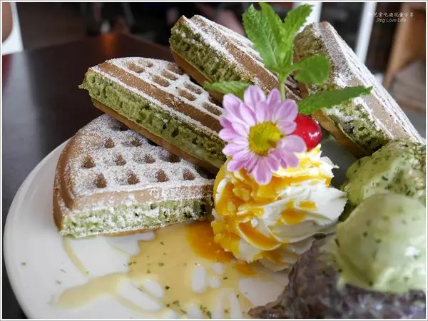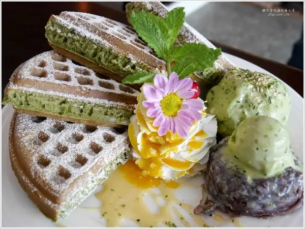 看到華麗的鬆餅一上桌,就非常吸睛,不管是撒上糖粉的抹茶鬆餅、