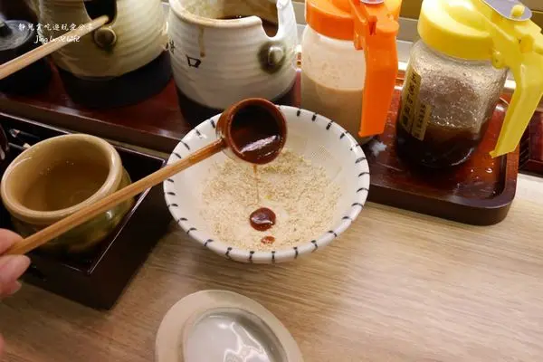 現磨的芝麻香氣搭配甘口或辛口醬油,依照自己喜好添加