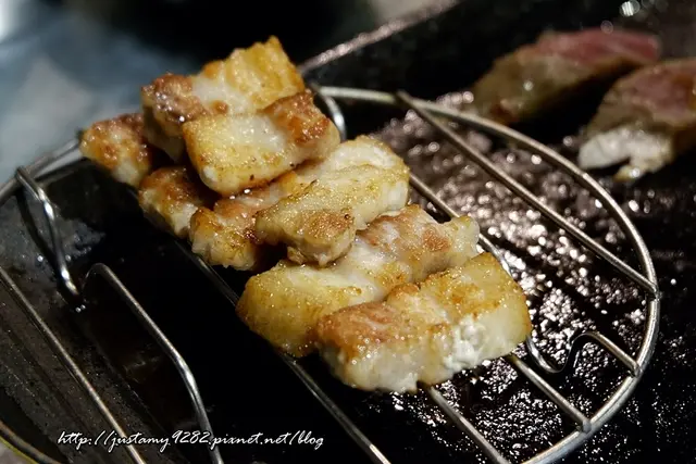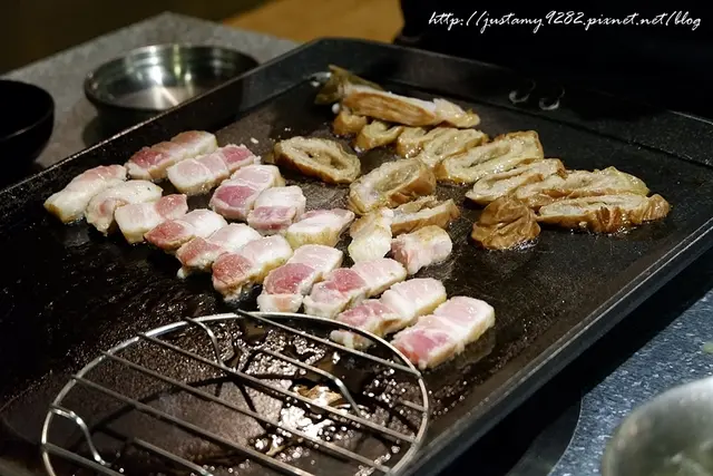 烤好~ 服務生會貼心的將肉品夾到您的分隔盤內 (剩下烤好的肉品就放在烤盤上的鐵網上)