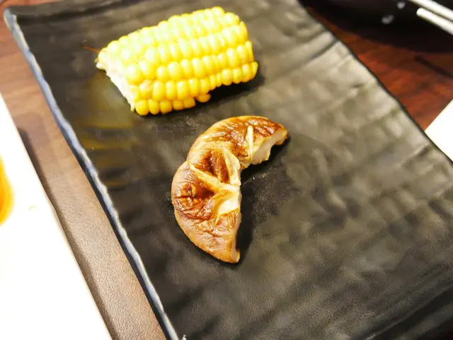 從香菇和玉米開始,換成店裡的服務小姐幫我們代烤