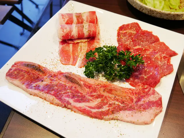 三品包含了牛五花、雪花牛與帶骨牛小排