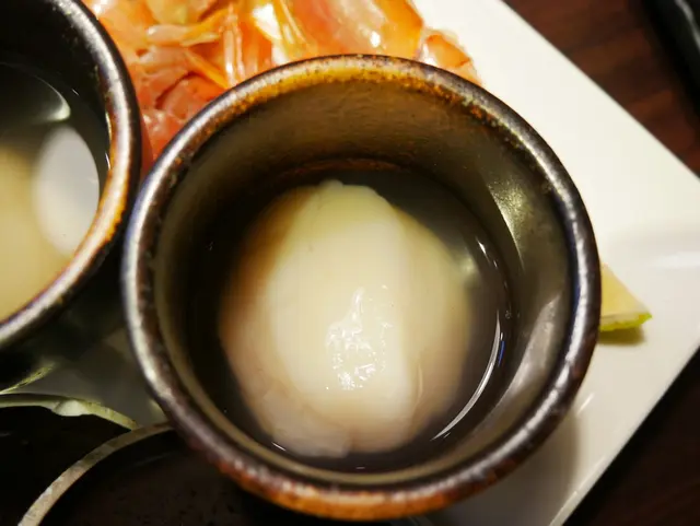 內料有煮軟的魷魚,以及蝦子和蛤蜊