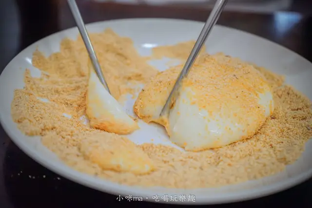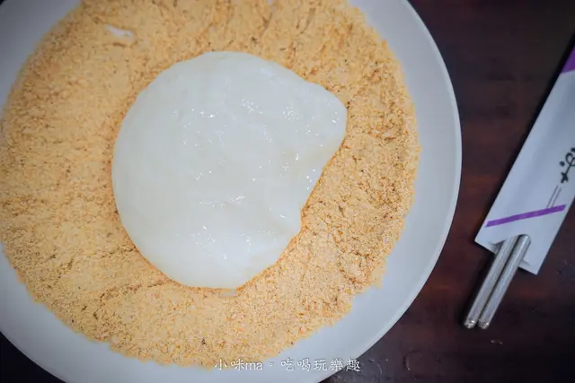麻糬有點黏黏濕濕的,隨便一滾就能沾滿花生粉,我自己真的沒有很愛鮮奶麻糬的口感,但兩個人SHARE嘗鮮還不錯