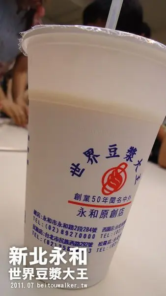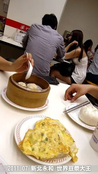 提到永和,應該很多人聯想到豆漿。光是我混的新北投舊北投區域就有5家豆漿店,光明路上的豆漿店就掛著"永和豆漿"。我想不只北投,全台各縣市應該都有賣豆漿的自稱永和豆漿吧!這次被宜蘭美少女Miko抓來永和吃宵夜,過12點只剩下永和的永和豆漿啦!永和的永和豆漿不叫永和豆漿,叫世界豆漿大王!不愧是大王,半夜三更的客人還超多!這家的豆漿很濃郁,很好喝,不愧是發源地的豆漿!除了豆漿外,還有很多小吃,像是蛋餅或是湯包等。大家邊吃邊聊天,半夜也有一個溫暖好聚又安全的好地方喔!