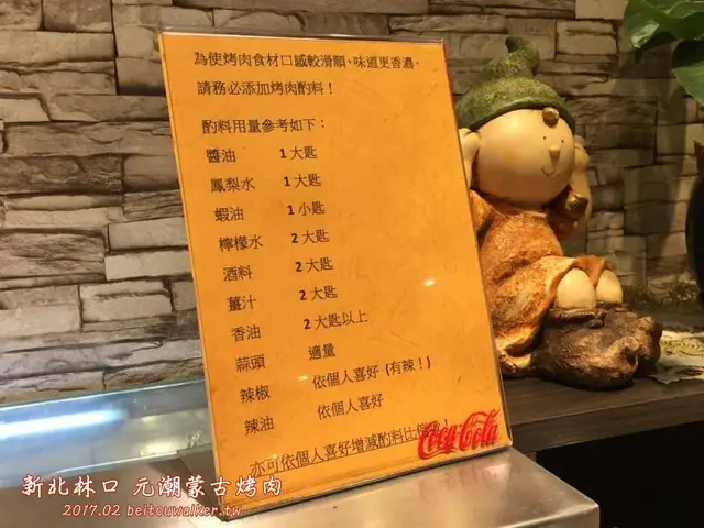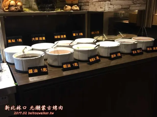 先吃了一小輪火鍋,接下來就是蒙古烤肉啦。蒙古烤肉比較像平常吃到飽火鍋店,採自助方式取用食材。先拿好肉類、蔬菜類。再至醬料區依自己的喜好調配醬之後交給廚師料理,料理後就變成美味香噴噴的蒙古烤肉啦!如果不知道怎麼調味沒關係,醬料區有教材教您怎樣調配黃金比例喔!