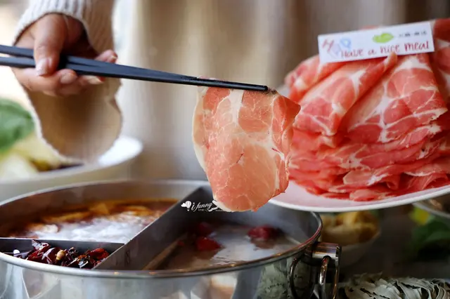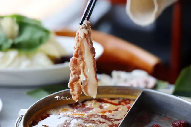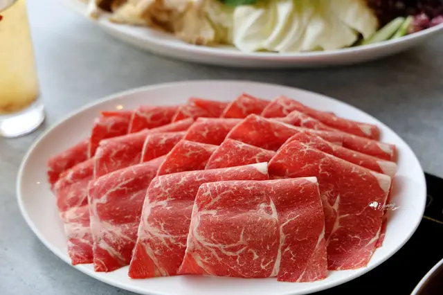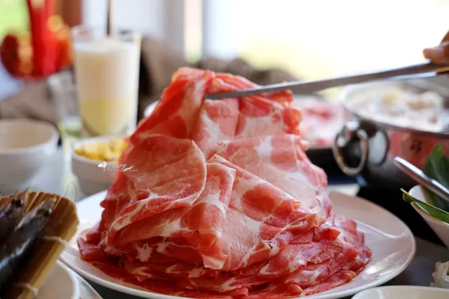這梅花豬肉片厚度很剛好,輕涮一下就能吃到肉質鮮嫩有彈性。