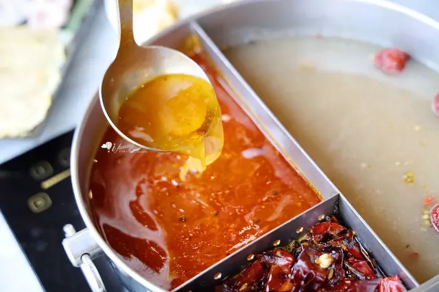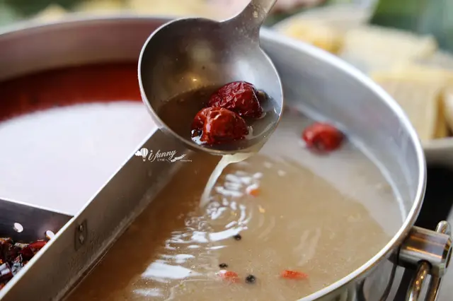 經典辣味鍋採十多種無毒中藥,及牛大骨煉製而成。將真材實料的香料區隔放置,可享受湯底的美味卻不致於吃到辣椒等,是很貼心的設計。