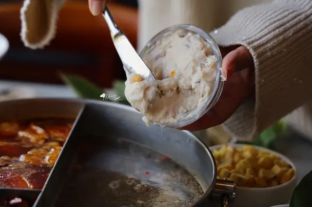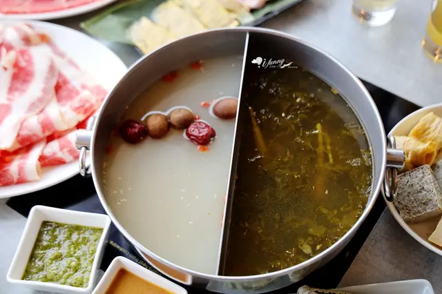 其中這個鱸魚放到酸菜高湯鍋裡煮,如此就是最近聲名大噪的酸菜魚。厚實且新鮮的魚片,簡直就是酸菜湯的神隊友!酸菜湯底在煮過魚片後,鮮味也整個大提升!