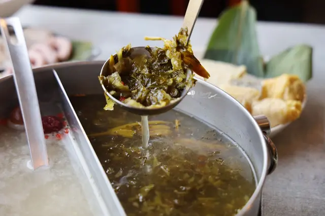 酸菜高湯鍋是還未上菜單的新品,店家自調配方熬煮出酸爽鮮香的滋味,會令人上癮般地喝不停。
