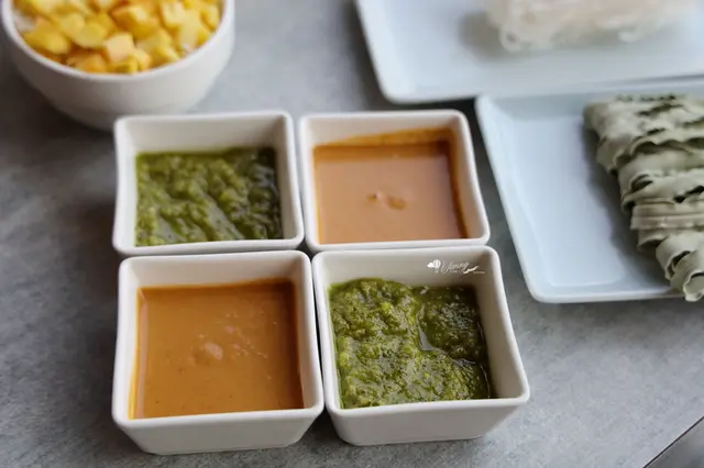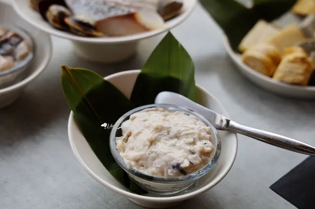 左邊怪味醬是加了花生的胡麻醬,香氣濃郁。右邊青醬是自製的蔬菜醬,這個蔬菜醬很厲害,友人吃到整碟不剩。