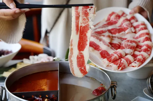 最喜歡放到紅鍋裡燙涮,油花化成肥嫰不膩的口感,大口吃肉的快感油然而生。