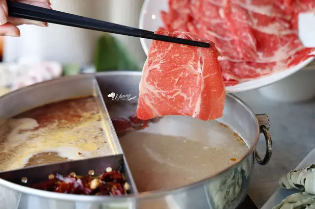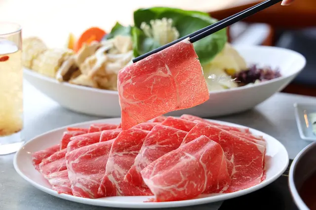 雖然霜降牛肉看起來油花並不是太多,但粉嫰的色澤依然令人食指大動!涮至粉紅色取出,就是軟嫰不柴的好口感。