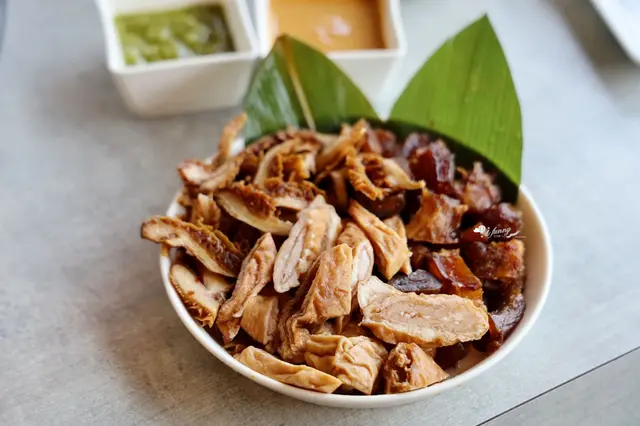 肉品沾怪味醬香氣四溢,搭蔬菜醬顯得爽口。