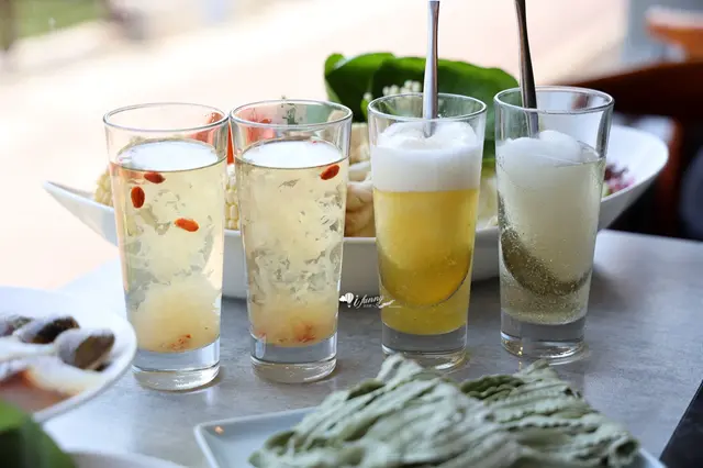 冰的飲品是鳳梨冰沙及梅子冰沙,酸酸甜甜的搭火鍋真過癮!熱的是枸杞白木耳飲,養顏美容聖品。