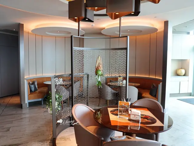 座位區有古銅色鏤空屏風區隔,空間更顯活潑。