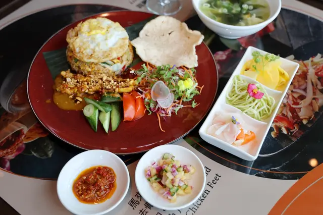 這次商業午餐菜單仍保留前一版本的熱賣品項,包括南洋風味黯然消魂飯、大馬甲必丹豬腱棒棒腿椰漿飯、鮮蚵湯泡飯和印度素乳酪丸咖哩配全麥餅…還可享特價點用飲品一杯,像是熱拿鐵只要NT$68、冰淇淋奶蓋紅茶特價NT$99。來到新北最高景觀餐廳的Asia49亞洲料理及酒廊用餐,迎來滿眼綠意、登高視野和噴香美食,讓人暫忘忙碌日常,享受當下的口腹之樂。